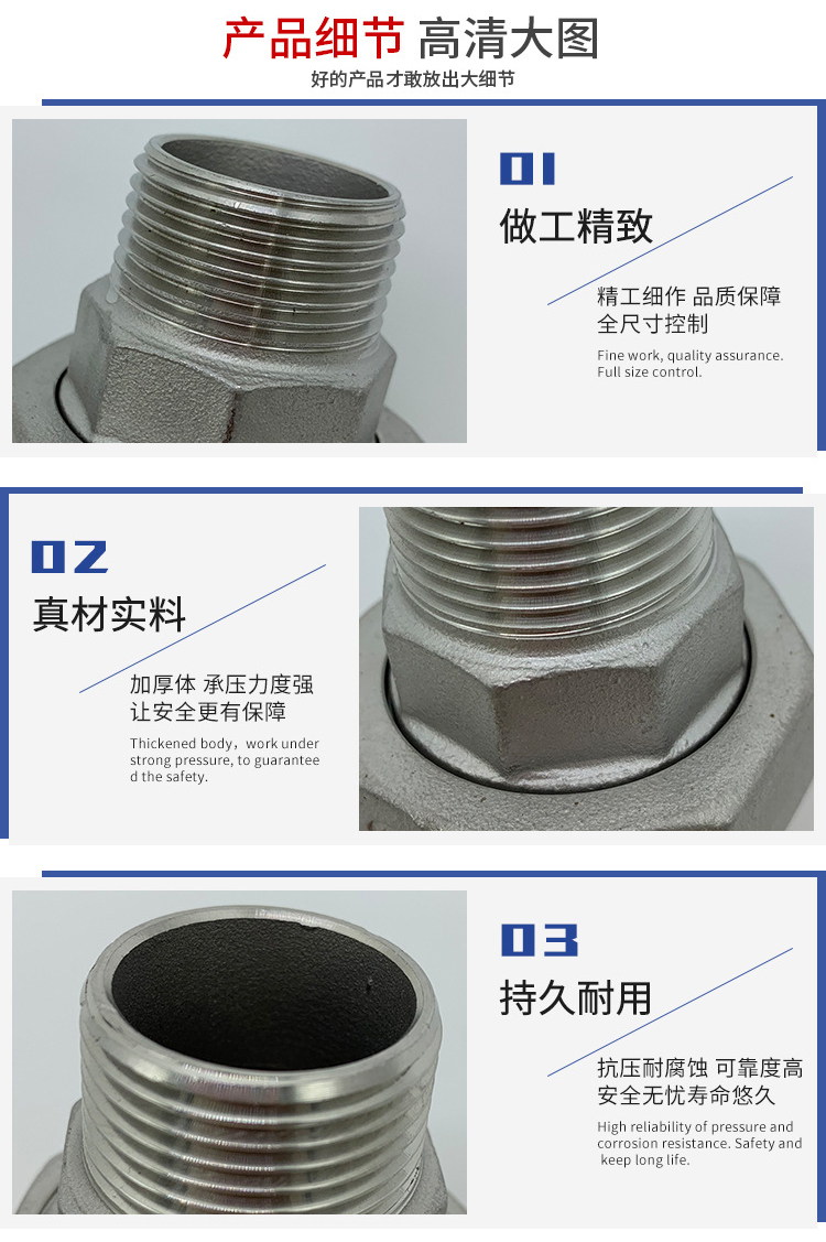 | 不(bu)鏽鋼雙(shuāng)頭外牙(yá)活接管(guǎn)件 | |
